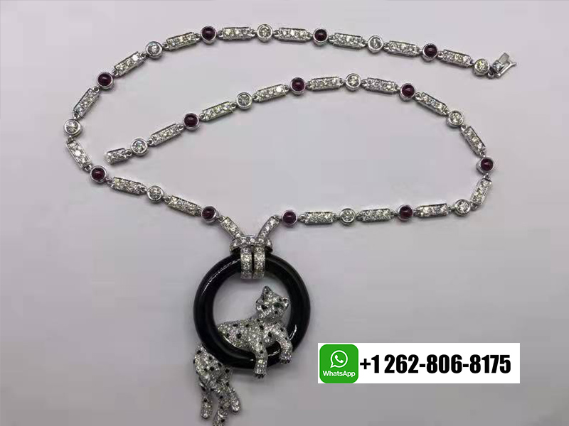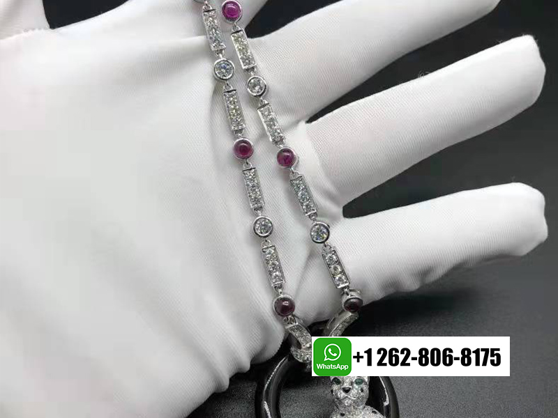 Custom Panthere de Cartier Diamond Ruby Sautoir Necklace in Platinum