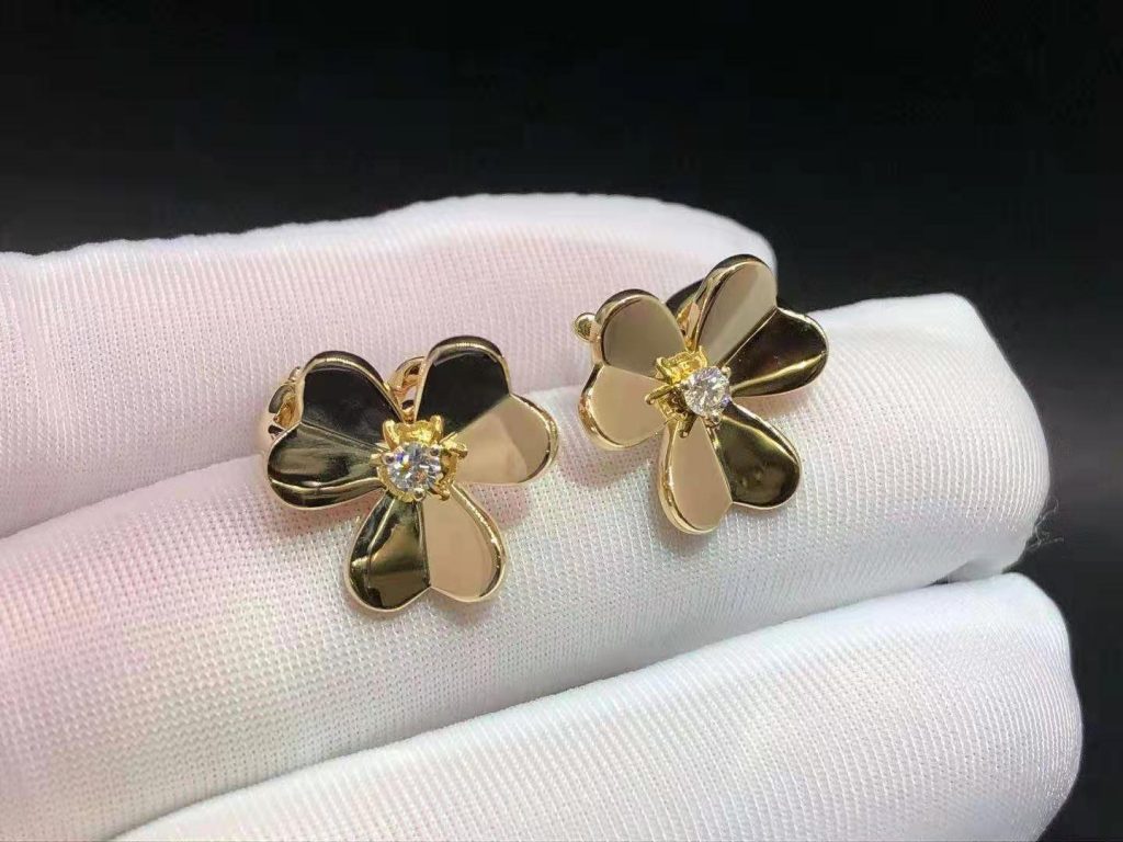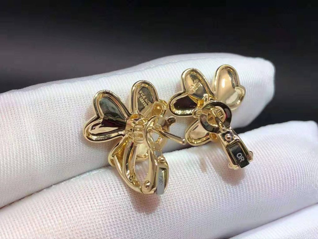 Van Cleef & Arpels 18K Yellow Gold Diamond Small Model Frivole Flower Earrings