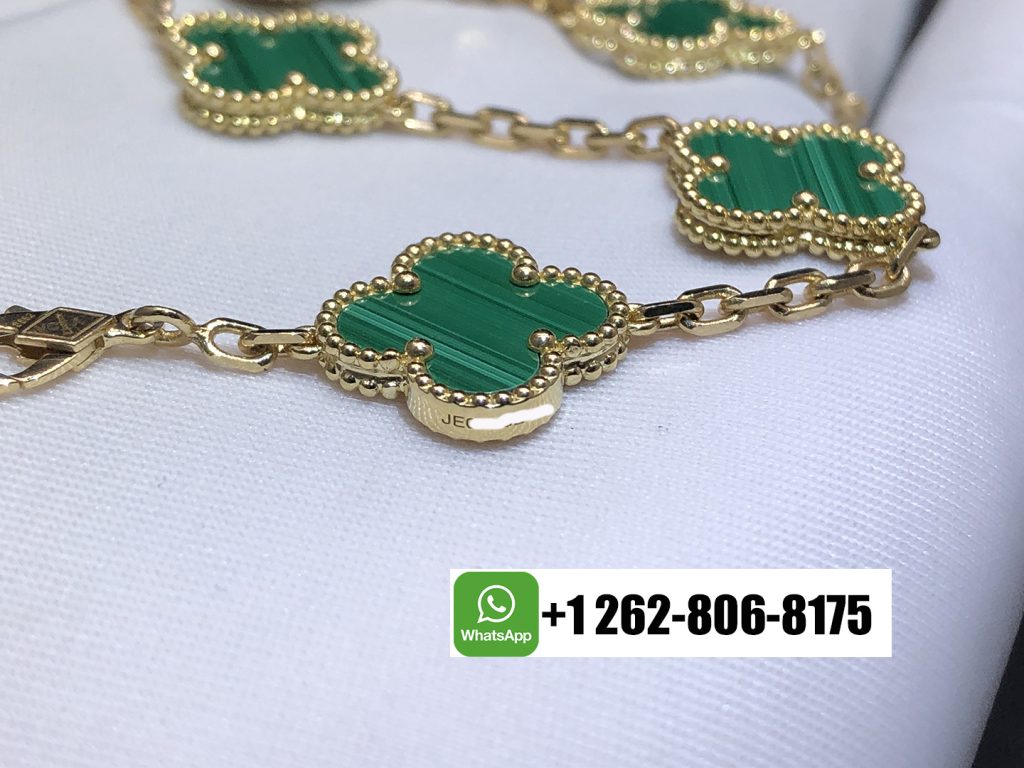 Van Cleef & Arpels Vintage Alhambra 18k Yellow Gold Malachite 5 Motifs Bracelet