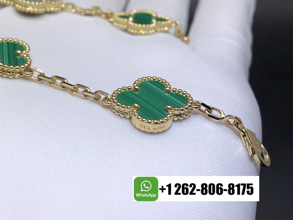 Van Cleef & Arpels Vintage Alhambra 18k Yellow Gold Malachite 5 Motifs Bracelet VCARL80900